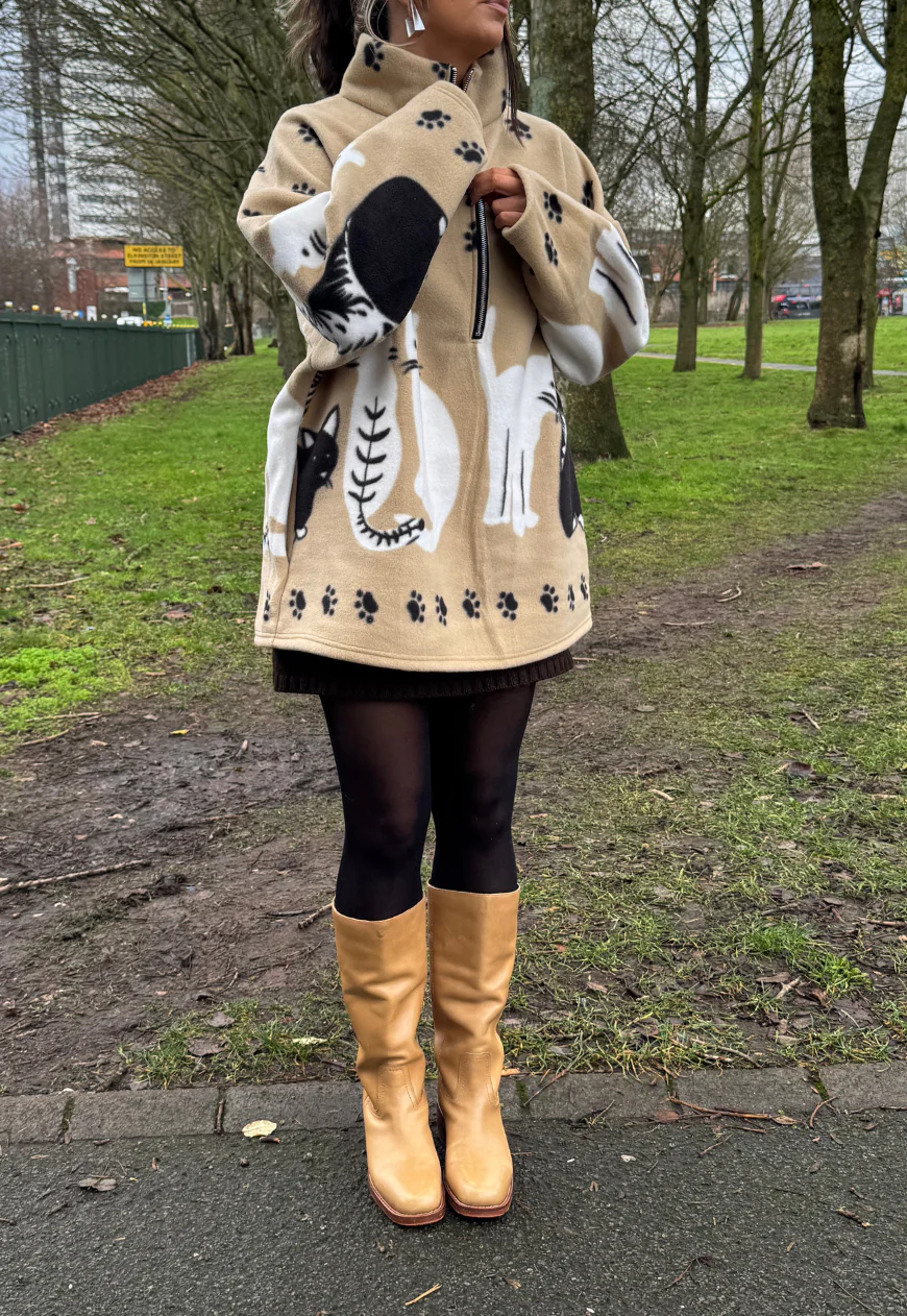 beige cat print fleece *free scarf*