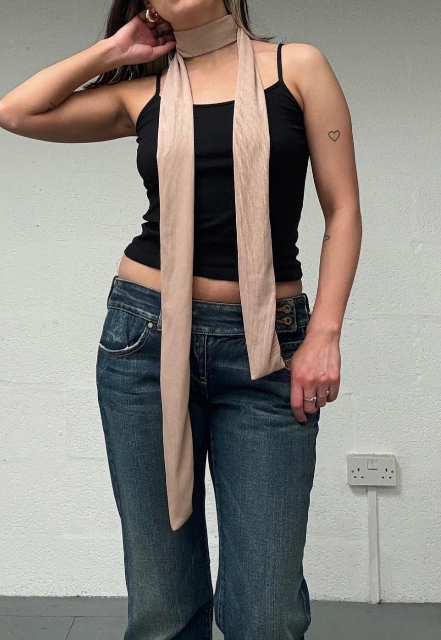 brown ribbed skinny scarf