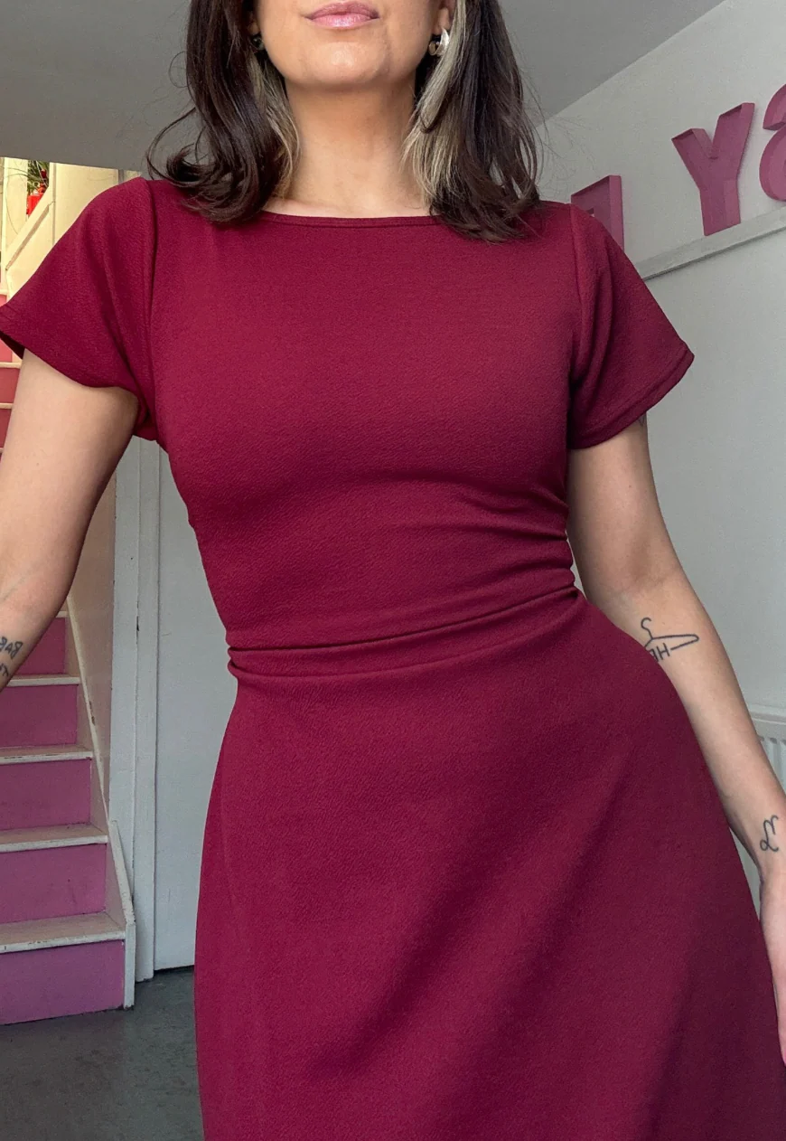 wine multiway cap sleeve cinch maxi dress