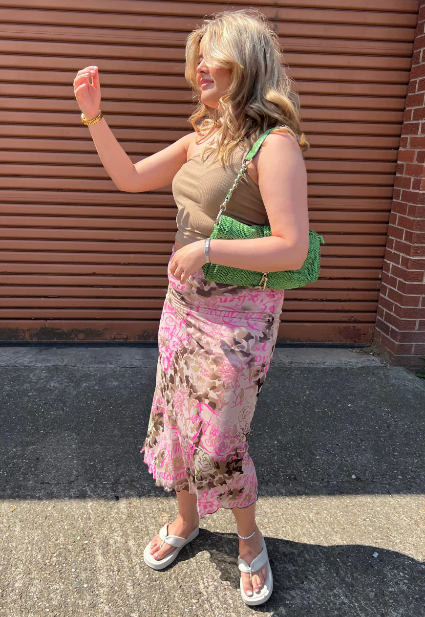 pink writing full lined mesh skirt