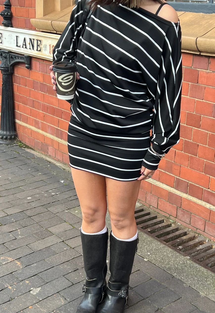 b&w stripe slouch dress